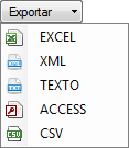 Pulsando sobre la flecha negra del botón accederemos al menú rápido para seleccionar el formato del fichero de exportación que guardará los datos definidos en el formato de listado en un fichero externo: