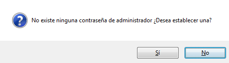 Introduzca en el usuario admin y la contraseña ponga la que quiera, al aceptar le dirá que no hay ninguna contraseña en el usuario administrador, si desea crearla, pulse en Sí y y ponga la contraseña que desee y pulse en Aceptar.